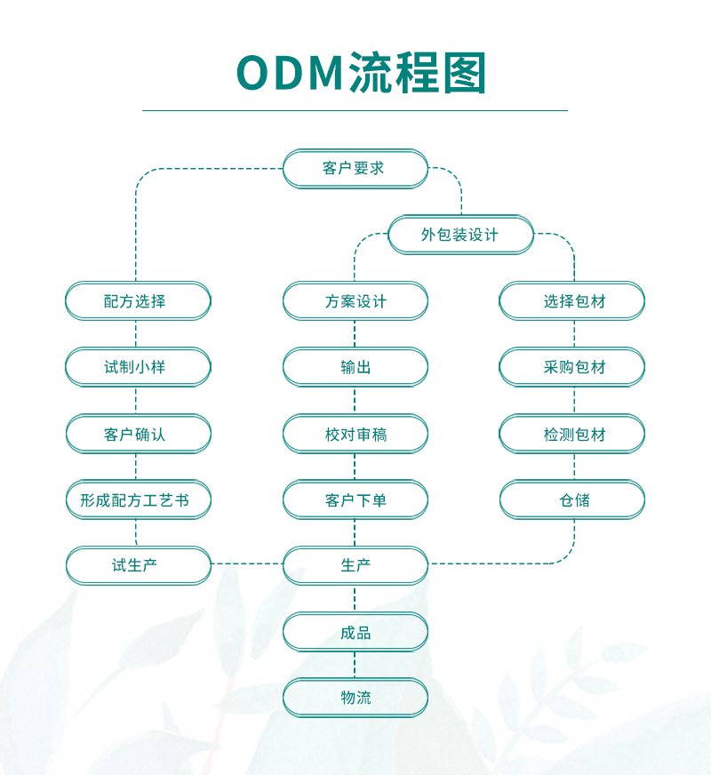 ODM為“ Original Design Manufacturer"的縮寫,通常直譯為“原始設(shè)計(jì)制造商”。發(fā)祥生物ODM是一個(gè)系統(tǒng)性、綜合性的服務(wù)項(xiàng)目,憑借發(fā)祥生物十六年的行業(yè)經(jīng)驗(yàn),為客戶提供一站式全程配套增值服務(wù),包括品牌注冊、產(chǎn)品規(guī)劃、包裝設(shè)計(jì)、三證提供、配方硏發(fā)、包材原料采購、產(chǎn)品灌裝、產(chǎn)品備案等。匠心的技術(shù)、雙贏的成本、全面的服務(wù)、積極的反應(yīng)、直接的溝通盡顯發(fā)祥生物ODM服務(wù)的省心和專業(yè)。 |