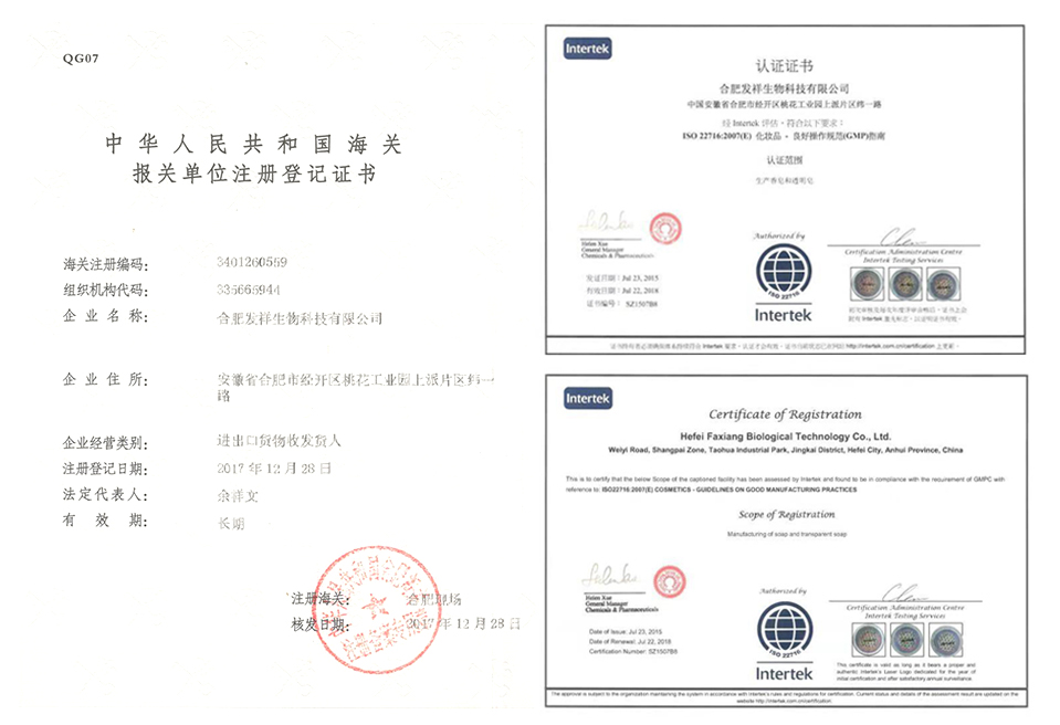 公司與國(guó)內(nèi)知名科研機(jī)構(gòu)合作研發(fā),2015年7月獲歐盟認(rèn)證及世界五百?gòu)?qiáng)企業(yè)屈臣氏驗(yàn)廠(chǎng)通過(guò)。