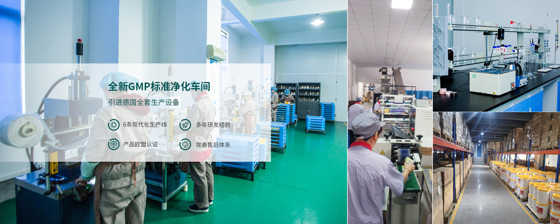 全新歐盟標(biāo)準(zhǔn)GMP凈化車(chē)間,引進(jìn)德國(guó)全套專(zhuān)業(yè)生產(chǎn)設(shè)備,擁有6條國(guó)產(chǎn)現(xiàn)代化生產(chǎn)線(xiàn)。